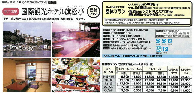 おすすめのお宿 平戸温泉 国際観光ホテル旗松亭 ツアー詳細